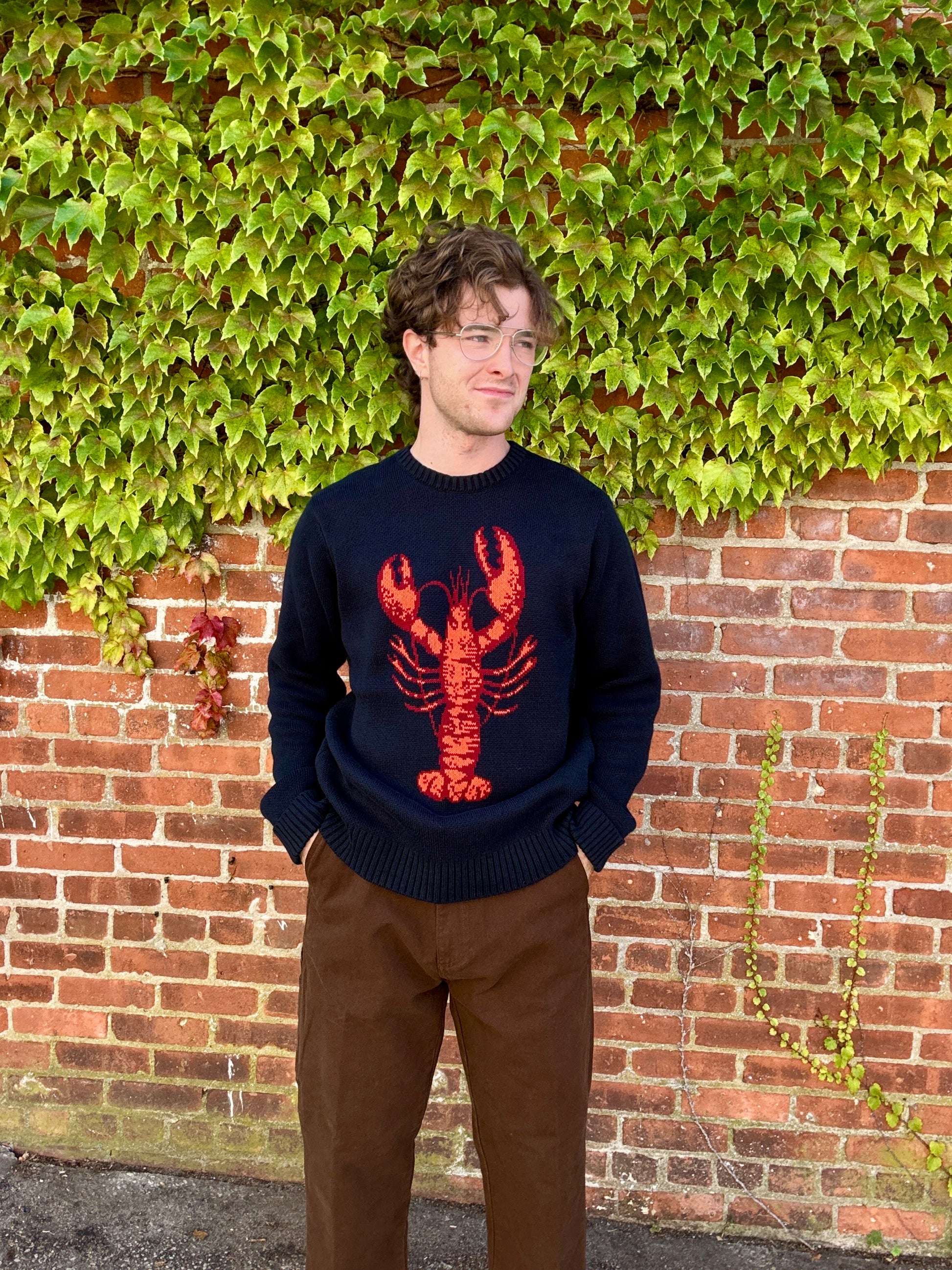 - Crew neck sweater with jacquard artwork on front