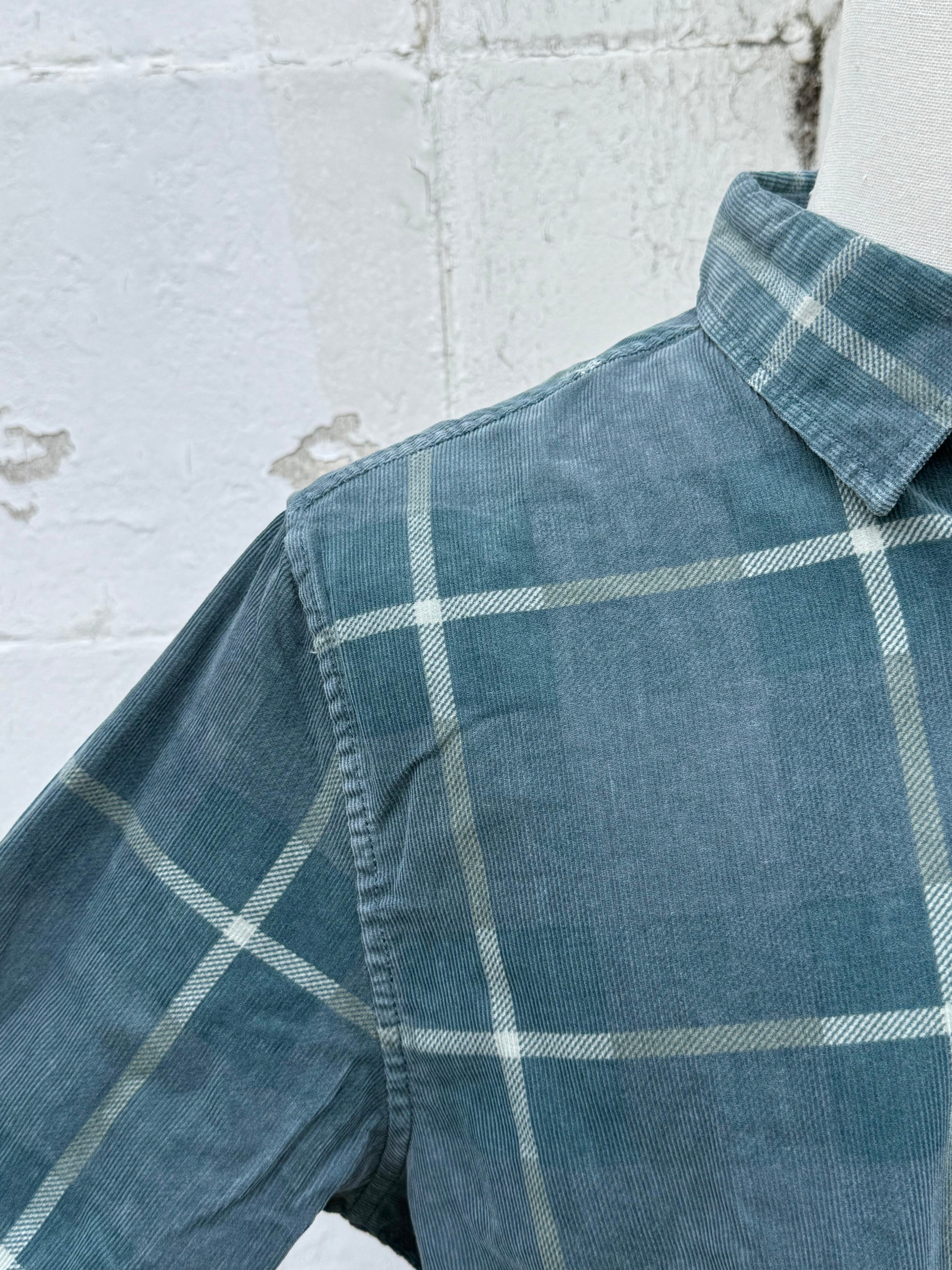 The Stevie Shirt is a variation of our popular Granada Shirt. It features a unique pigment-printed plaid atop cotton corduroy, followed by a distress wash for a soft, faded appearance.